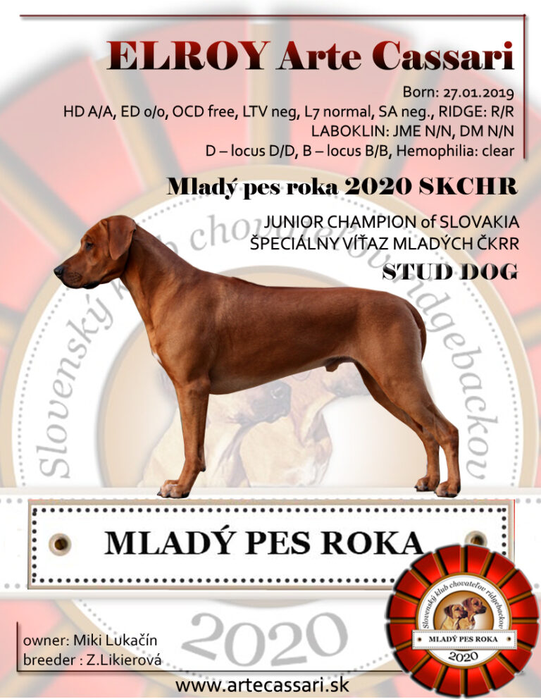 ElRoy wurde ebenfalls auf einigen Hundeausstellungen vorgestellt und kann sich mit Stolz mehrfachem Champion nennen: